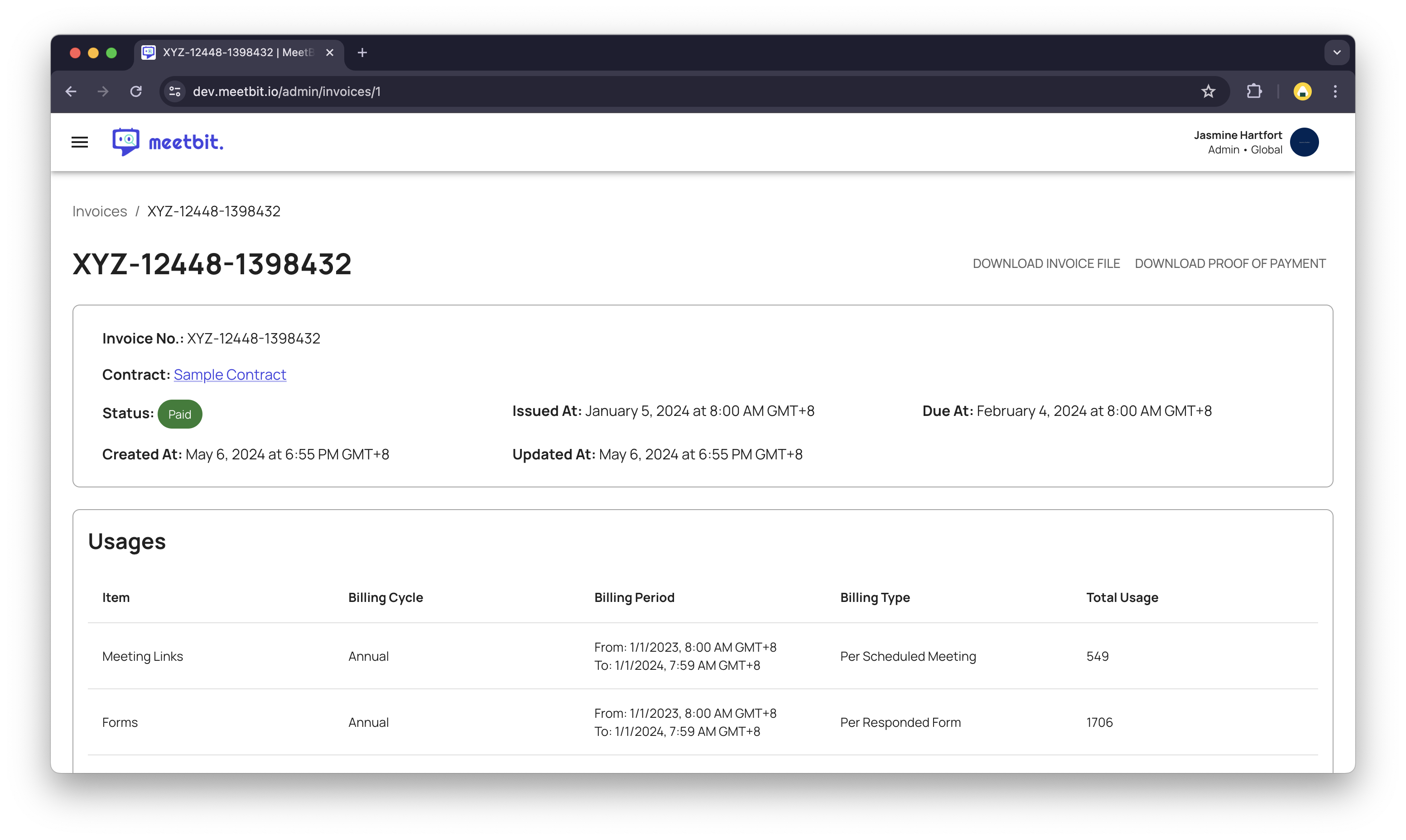 If the Invoice has been paid, you can also download the proof of payment by clicking “Download Proof of Payment” in the upper-right corner.