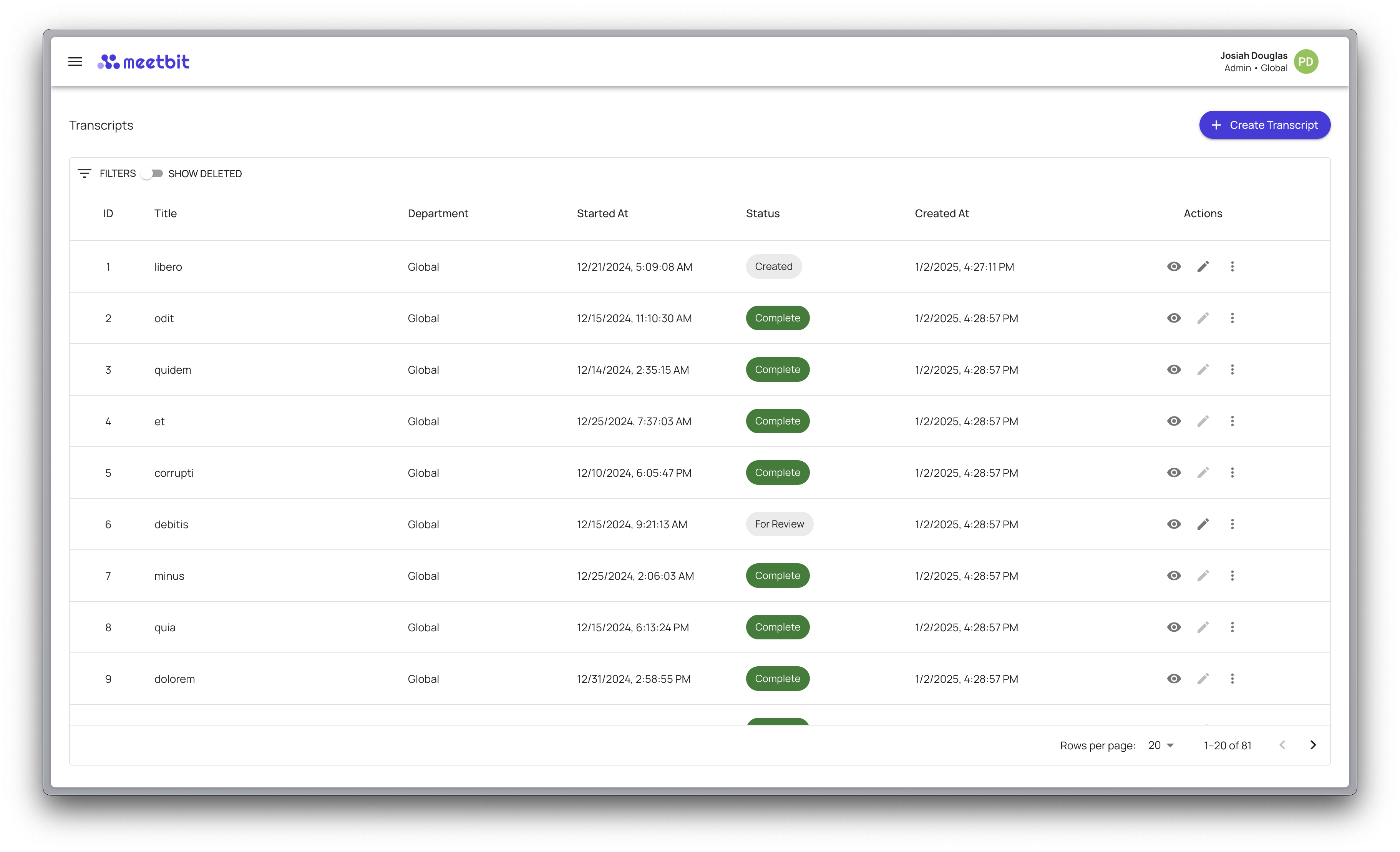 <figure><img src="https://91127013-files.gitbook.io/~/files/v0/b/gitbook-x-prod.appspot.com/o/spaces%2F6B5cn0CbIbT4a4yvlffa%2Fuploads%2F97UJrnTuaQPjZtykZVBC%2FScreenshot%202025-07-06%20at%2001.34.06.png?alt=media&#x26;token=67f90626-b16c-4166-8c46-0b5af11f02c0" alt=""><figcaption><p>Transcripts Page</p></figcaption></figure>