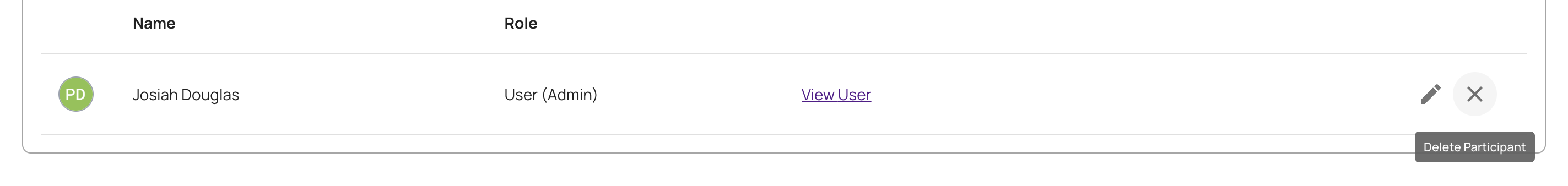 4. To remove a Participant, click the "Delete Participant" icon on the row of your chosen Participant then confirm the action on the dialog popup.