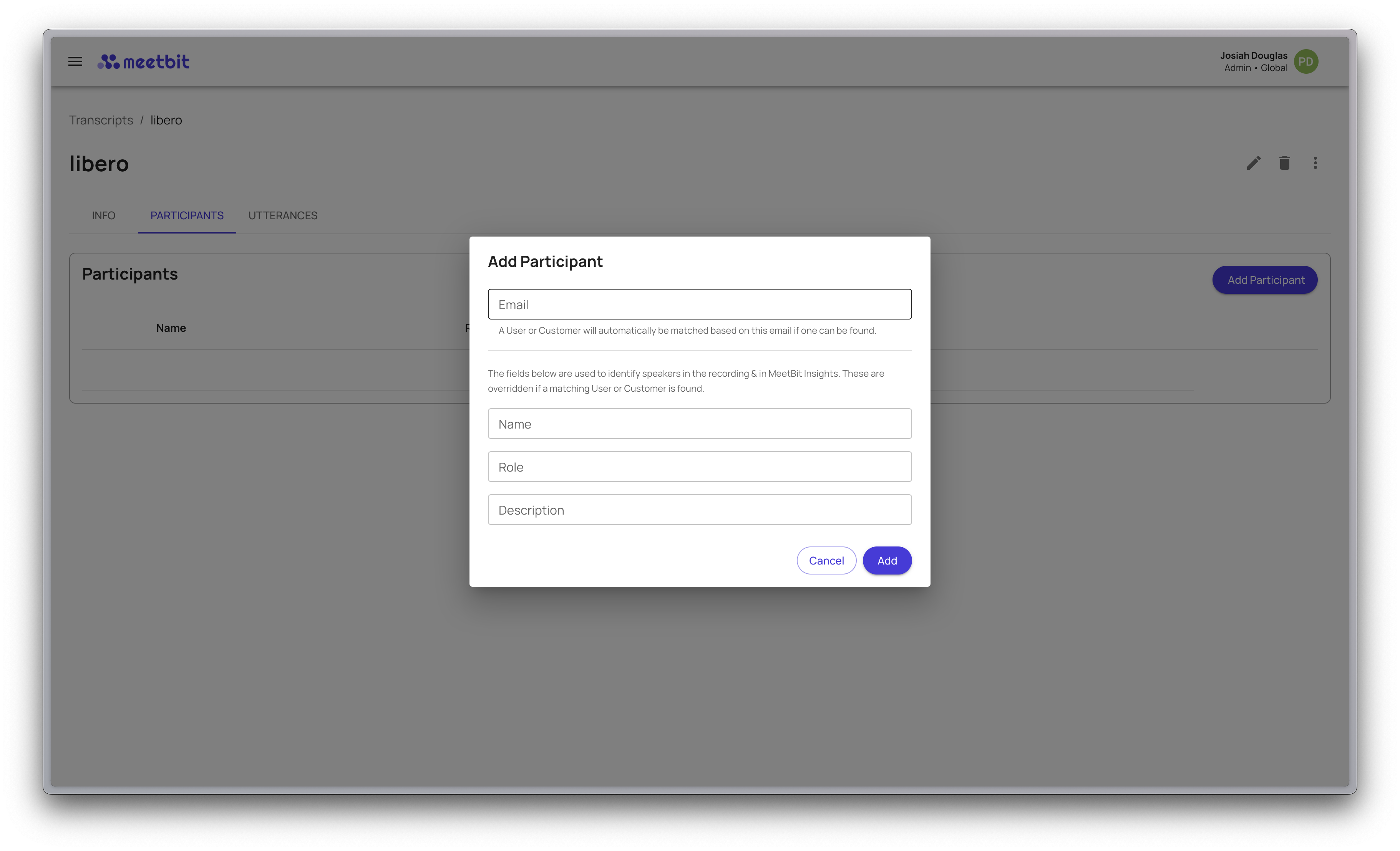 <figure><img src="https://91127013-files.gitbook.io/~/files/v0/b/gitbook-x-prod.appspot.com/o/spaces%2F6B5cn0CbIbT4a4yvlffa%2Fuploads%2FTBGILsGQhxjpd4t7gmdn%2FScreenshot%202025-07-06%20at%2002.12.22.png?alt=media&#x26;token=6a86f90c-f074-494a-a8c6-a77385251c09" alt=""><figcaption><p>Add Participant Modal on Transcript Page</p></figcaption></figure>