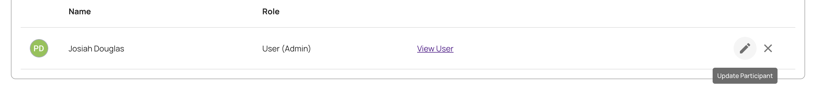 3. To update a Participant, click the "Update Participant" icon on the row of your chosen Participant. On the modal that appears, update the necessary information and click "Save".